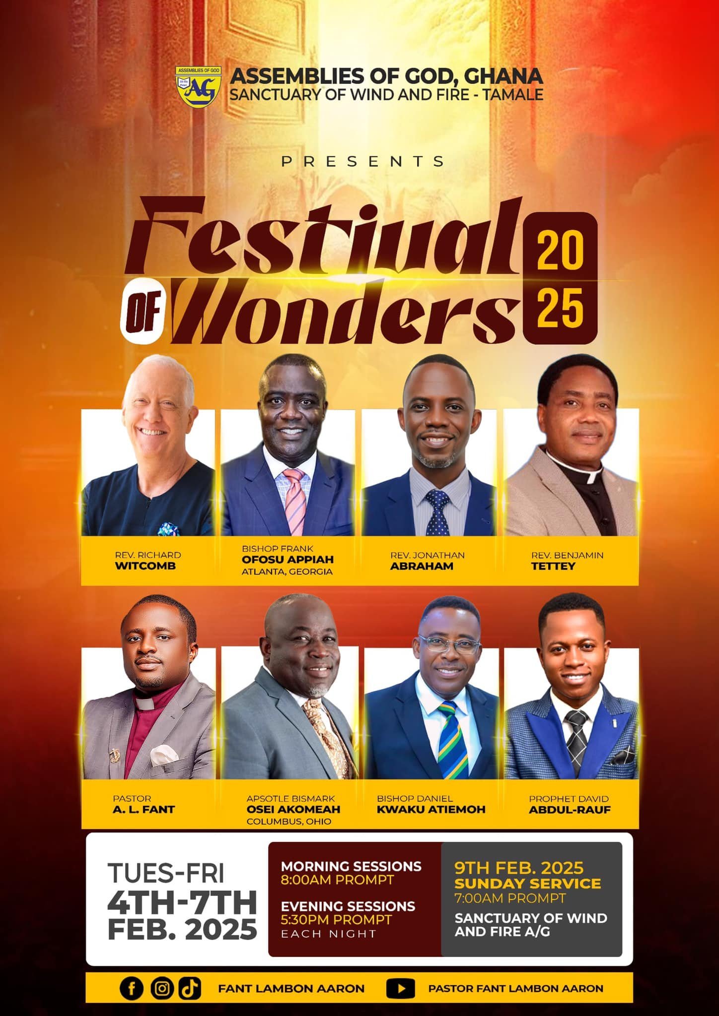 Festival of Wonders Conference 2024: A Life-Changing Encounter Awaits You!The long-awaited Festival of Wonders Conference is here! From February 4th to 7th, 2024, the Assemblies of God Sanctuary of Wind and Fire in Tamale will be the epicenter of divine encounters, powerful…